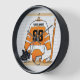 Personalized Orange and White Ice Hockey Jersey Wall Clock