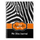 This monogrammed black and white zebra print stripes pattern note book with orange accents has template boxes for you to add your name, monogram, and other text. If you need help customizing this item, please email niteowlstudio@gmail.com for assistance.