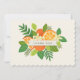 A cheerful orange floral illustration brings to mind sunny summer days. The design can be personalized with your own message and name. Good for family recipes or bridal showers. The illustration includes hand-drawn images of oranges, slices, flower blossoms and leaves in bright colors including orange, yellow, green and cream.