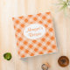 A bold orange gingham pattern decorates this retro style recipe binder. Personalize this binder by changing the name. Use this empty binder to organize all of your favorite recipes. The design is from original art.