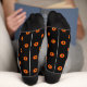 This fun Halloween socks are bright and colorful. The small print is crisp and shows the fun details. The softness of the socks feels nice on my feet and ankles. .