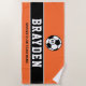 Personalized Orange Soccer Player Name Beach Towel