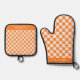 Personalized Orange White Tartan Plaid Oven Mitt & Pot Holder Set