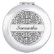 The design is an elegant ornate vintage lace pattern in black. The background is white. Personalize it with a name and/or your own text such as Bridesmaid or Flower Girl. These purse or pocket mirrors are great gifts for the bridal party - bridesmaid, maid of honor. If you like the design but can't find the color you want just message me.