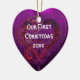 Celebrate your first holiday season together with this beautiful Our First Christmas heart ceramic ornament. Featuring a romantic purple background with an elegant heart flourish, this ornament is the perfect keepsake to mark a special milestone in your relationship.