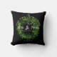 Personalized Our First Christmas Married Newlywed Throw Pillow has an elegant design and makes a great gift idea for a couple with a winter wedding. The background is black and can be customized to any color. The front has a green wreath with red holly berry leaves on the center. The text is "our first Christmas as mr and mrs" followed by personalized last name and year. Click personalize template option and follow the prompts.