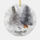 Personalized Owl Bird Fox Winter Cabin Ceramic Ornament