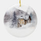 Personalized Owl Bird Fox Winter Cabin Ceramic Ornament. Great gift for nature lovers.