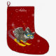Perfect! Exactly what I ordered! I uploaded a picture of my blue chow, and the screen print was incredible. the back side of the stocking was the red and black checkered print. my puppy's name was also printed on the cuff of the stocking. PERFECT! Highly recommend this product! My puppy's name was screen printed onto the cuff of the stocking, the font was perfect!