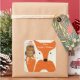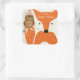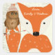 Oh so Big Cute Eyes Owl and Fox Barn Wood Forest Christmas Red Rustic Knitted Hats on Cutest Little Brown Owl and a Orange Sweater on the Fox to keep them warm. Personalized with your names and you message of Love. Ivory Barn Wood Grain Pattern on a Square Sticker