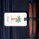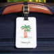 This personalized luggage tag features palm trees, string lights with stylish script typography,