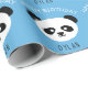 Personalized Panda Bear Kawaii Birthday Boys Blue Wrapping Paper