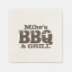 Personalized paper napkins for BBQ party. Vintage typography design with masculine letters. Funny accessory for barbecue dinner party on Birthday, Fathers Day, wedding, housewarming 4th of july etc. White or ecru and brown text.