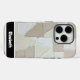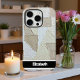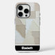 This customizable phone case showcases an abstract, mosaic-like design with varied geometric shapes in sophisticated beige, white, and light brown tones, offering a modern, textured aesthetic. The unique, painterly appearance adds an artistic touch to your device. A sleek black bar at the bottom is ready for personalization with a custom name like "Elizabeth"; if you don't want a name, you can remove it and any other elements you don't like from within the design tool, creating a truly unique accessory.