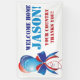 Personalized patriotic red, white and blue balloons and ribbon welcome home military banner. Perfect for welcoming your soldier back home after a tour of duty. Great homecoming banner for your loved one.