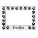 This cute magnetic photo frame features black paw prints around the frame on a white background. Easily personalize with your pets name. Click the "Customize it!" button to change the text size, text color, font style, background color and more!