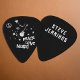 Strum the chords of harmony with our Personalized Peace Love Music Guitar Pick. This black pick features a retro grunge design that combines the iconic symbols of peace, love, and music. The peace sign, heart, and guitar illustrations, along with stars for effect, create a captivating visual. On the back, make it uniquely yours by adding a custom name printed in bold white letters. Let your music resonate with your personal touch and spread the message of unity through your melodies.