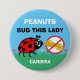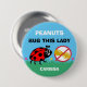 Personalized Peanut Allergy Alert Ladybug button. Add name at bottom or change to say "Epinephrine Inside" and can attach to medical bags, book bags, purses, or pockets so others know where emergency medicine is located. Blue sky, green grass with flowers, with a cute red and black ladybug. No peanut symbol in red. Designs by Lil Allergy Advocates ww.lilallergyadvocates.com