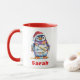 Get tangled in the holiday spirit with this Personalized Penguin Christmas Lights Custom Name Mug! This charming Christmas coffee mug features an adorable penguin wrapped in a colorful string of Christmas lights, wearing a cozy Santa hat. Easily customize it with any name to create a unique and funny holiday gift for kids, friends, or anyone who loves festive animal designs.