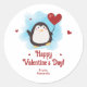 Personalized Penguin Valentine's Day Classic Round Sticker