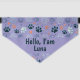 Let your furry friend shine with this customizable pet bandana featuring the phrase "Hello, I'm [Name]" and a fun paw print pattern! Perfect for dogs, cats, or any pet with style, this bandana is ideal for daily wear, special occasions, or adorable photo ops. Personalize it with your pet’s name for a unique and thoughtful gift.