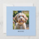 A stylish greetings card for any occasion, to personalize with a favorite photo of your pet dog or cat, with their name underneath on a blue background. The reverse side is blank white for your own message. Send to the animal lovers among your friends and family, for them to enjoy the cute photo of your four-legged friend.