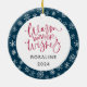 This sweet custom ornament showcases your furry companion! On the front, a holiday wreath frames a round photo of your dog, cat, or other pet. On the back, "Warm winter wishes" is written in fun lettering, with the pet's name and the year below. A navy blue and white snowflake design borders the typography.