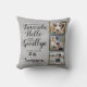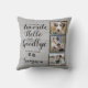 See 'personalize this template' to change photos, and name. Pillow is double sided, identical design both sides. It is best to pre crop the photos so they are centered in the frame.