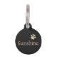 Simple design in sand and black with your pet's name and address, your phone number or text. And a matching paw print.