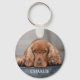A simple and minimal double sided custom dog photo and name keychain, featuring one photo and your dog's name in a modern font on the front and back. Simple to customize by adding your dog's photo and name.