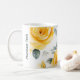 This personalized mug features a vibrant, repeating pattern of hand-painted yellow roses with accompanying buds and leaves. The design has a soft, watercolor aesthetic that gives it a delicate and elegant feel. Strategically placed throughout the floral motif is the stylized medical abbreviation "RX", seamlessly integrated into the pattern.