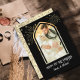 Impress your loved ones with a stunning elegant Gold Islamic-themed eid card that showcases an exquisite vintage personalized photo of a newlywed couple and elegant calligraphy of the word ' Happy first eid Together transform this user-friendly Personalized phto eid greeting card template into a truly unique greeting by effortlessly personalizing it with your photo and names.