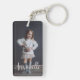 Custom keychain features a favorite photo(s) with an elegant script overlay for your name. The text font and color can be fully modified. You can choose the same photo on both sides or opt to have one photo on the front and another on the back to make this uniquely yours. Order today for yourself or to give as the perfect gift for that special person.