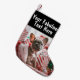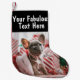 Perfect! Exactly what I ordered! I uploaded a picture of my blue chow, and the screen print was incredible. the back side of the stocking was the red and black checkered print. my puppy's name was also printed on the cuff of the stocking. PERFECT! Highly recommend this product! My puppy's name was screen printed onto the cuff of the stocking, the font was perfect!