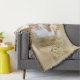 A quality printed throw has its advantages. This is a much finer weave throw than its loopier cousins, and though lighter, it is worth the investment for custom room accessorizing. The back is much prettier than the typical brown, and the fringe on the long sides very vivid, the selvage nicely done. Before photographing, I washed the throw in cold water, delicate, with a thicker woven throw the same size. On tumble dry low, this throw was dry in half the time as the other. This is a very practical quality if you use throws for furniture covers or to wrap up in frequently. The sleekness of the fabric makes it a great layer for accenting or protecting without the feeling of sitting on too much stuff. Perfect for napping or when you feel a light chill coming on. The color printing is beautiful and on this fabric, matched the design and color of my Photoshop image. This is an advantage for blending room fabrics and colors. The fringe on the short sides prints the colors from the design image and therefore varies from the side fringe. I streaked a white fractal line through the plaid pattern to give the illusion of weaving. This printed as crisp as an illusory thread, and put some white in the short side fringe, showing another advantage of print vs loomed- for artistic purposes, line lines, detail, and color integrity can be planned and preserved. My loomed throws have color limitations and more of a needlepoint texture. Print throws reproduce an exact image. The throw felt a little stiff straight out of the package, but this went away in the first delicate wash. Of course I searched the wash water for ink or bleeding and there was none.