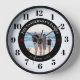 I received this as a birthday gift from my husband to replace a clock that had broken. It was perfect, pictures of my sweet family to see at every hour of the day. The size of the pictures looks nice for the size of the clock and I love looking at it! The only downside is there is no cover for the battery on the back, which makes me nervous having little kids running around the house, but an easy fix with some tape. The printing turned out clear, considering they were all cell phone pictures. Some of them look slightly grainy upon getting close up. But so nice overall!