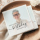 Modern birthday party napkins featuring a custom photo. Easily replace the sample image with a photo of the guest of honor. The word "birthday" appears in elegant black handwriting script. Personalize the text with the name and birthday year in black sans serif font. A white gradient overlay helps make the text pop.
