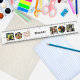 Personalize this ruler with six of your own favorite photos, and a name across the center. This custom ruler makes an everyday item into a portable gallery, bringing your family, friends or pets to your desk. Make a collage of your pets, create a gallery of your friends, or customize the ruler for your kids as a fun addition to a school pencil case.