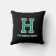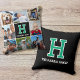 Create your own custom photo pillow! This stylish template showcases eight of your favorite photographs, and is personalized with a monogram letter and text — ideal for a single name, pet's name, sports team, or family surname. Both sides can be customized with the same or different text. You can also change the background color by using the design editor tool. This stylish design features a retro block font, with a sports jersey style, and is perfect for all ages, including kids, teenagers, and adults. Custom pillows are a lovely addition to your home, and make a unique gift for friends and loved ones. Printed colors: blue-green green black and white.