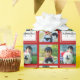 Red background with your first or last name, and single letter initial monogram, add your 3 favorite digital photos to this unique and custom personalized collage photomontage monogrammed gift wrap!