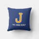 Personalized Photo Collage Monogram Navy Yellow Throw Pillow