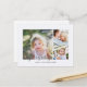 Personalized photo Collage Universal Greetings Postcard featuring a stylish photo collage with 6 customized images, your greetings message in elegant handwritten script font, your name, date, year, message on the back in a modern and simple sans serif font.
