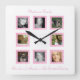Personalized Photo Collage Wall Clock: Pink Square Wall Clock