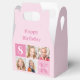 Cute 4 photo personalized happy birthday party folded favor boxes for a little girl or young woman. Celebrate your child's birthday with beautiful photographs of them on this add your own photographs with adorable pretty pink squares. Add their name and age.