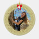Make a personalized senior class or graduate Christmas ornament for your tree or to give as a gift. Change the photo to one of your own; this ornament is shown as one sided but you can add custom names to the back if you choose for $3 more. Just use the designer tool before you order. Tiny red and green Christmas speckles on tan ornament background with small red bow at top where gold thread hanger is attached.