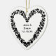Create a beautiful personalized heart shaped ceramic ornament by adding the couples names and wedding date. The modern elegant typography can be customized. Add a photo on the back for a lovely photo keepsake or party favor. The unique heart design is my own hand drawn creation. This would be a great wedding or anniversary party favor or gift.