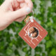 This We Love You Dad Photo Keychain is decorated with the word LOVE in white typography on a rust terracotta background.