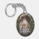 A keychain for friends and family to carry a photograph of their loved one or pet, the words "IN LOVING MEMORY OF", their name and the dates.