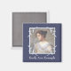 Dark Blue and Pale Blue Photo Remembrance This deep blue and pale blue square magnet is an easy way to create a lasting keepsake of someone dear. You can easily add a photo of your late friend or relative (photographs of living people also allowed if you simply like the design!) and his or her name. Includes an elegant silver look frame with delicate leaves.