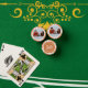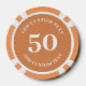 Personalized poker game chips with a custom photo and your own text (family name, established year, etc). This design in orange includes the number 50 but it can be edited with any value amount.